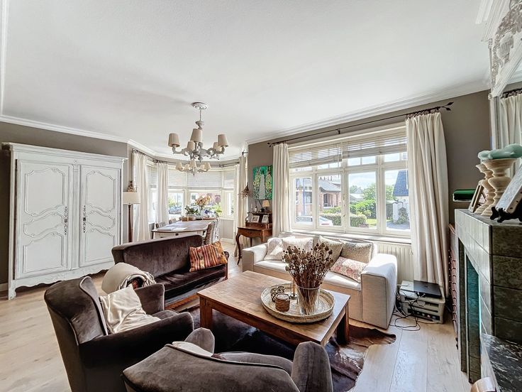 Deze halfopen bebouwing 'cottagestijl' is als volgt ingedeeld: Inkomhal, WC, living, keuken en berging. Op het verdiep: 3 slaapkamers en 1 badkamer met douche en lavabo. Tweede verdiep: 2 slaapkamers. Beneden is er ook nog een terras zuidwest georiënteerd, en een tuin. Bovendien is de woning volledig onderkelderd waarvan een gedeelte garage. De bezoeken starten op zaterdag 15 juni op afspraak. Ref. Villa Georges