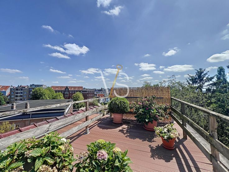 Situé dans un quartier très recherché, au cinquième et dernier étage d'une copropriété style "ART DECO" ,nous vous proposons ce bel appartement de +-105m2 bruts comprenant une chambre de +-11m2 (mezzanine) + bureau de +-7m2 donnant sur la magnifique terrasse de +-45m2 exposé PLEIN SUD!