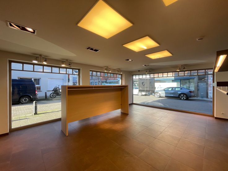 Het handelspand heeft een royaal oppervlak van 394m² en bevindt zich in het hart van Drongen. Het beschikt over een ruime vitrine, een apart kantoor, een afzonderlijke keuken, een garage, opslagruimte en een winkelruimte.