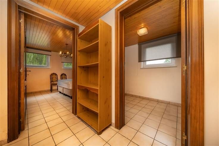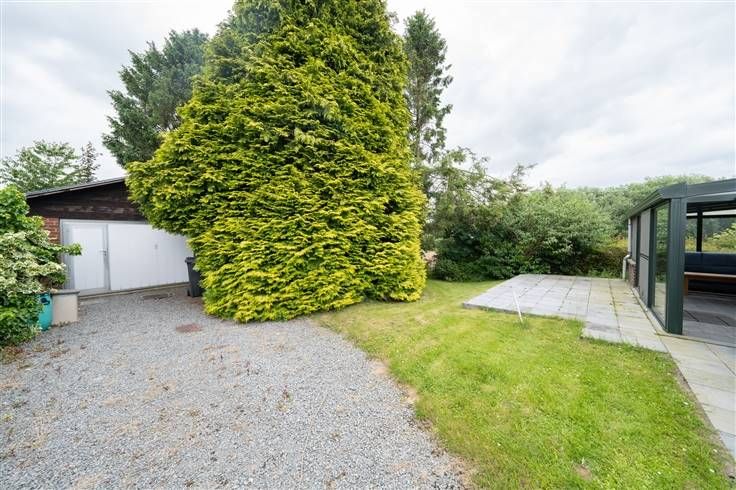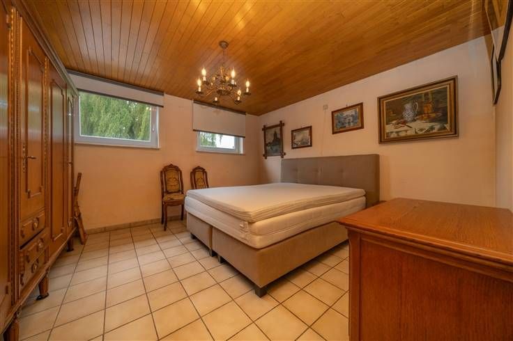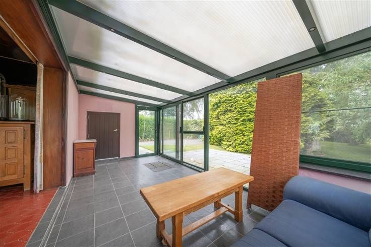 Gelijkvloers (103m2) + garage (39m2): inkomhall (2m25x1m45), berging/wasplaats (1m75x2m20), leefruimte (30m2) uitgevend op de veranda, open keuken (2m85x2m95), ruime veranda/zithoek (2m35x5m50) uitgevend op de tuin, berging (1m40x2m75) met de gas- en elektriciteitsmeter, slaapkamer 1 (3m95x3m70), badkamer (1m90x2m10) met douche, meubel met wastafel en WC, terras en grote tuin voor en achter de woonst met open zicht op de velden