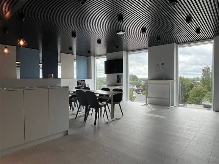 Deze ruimte omvat open space, een ruim eetgedeelte, 4 aparte vergaderzalen/kantoren en een berging.