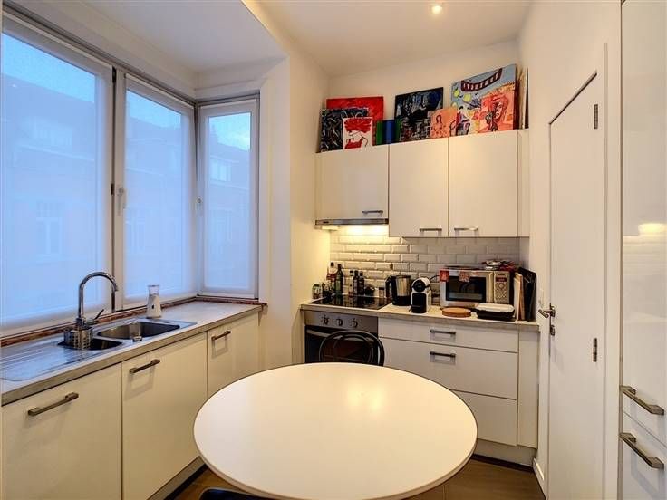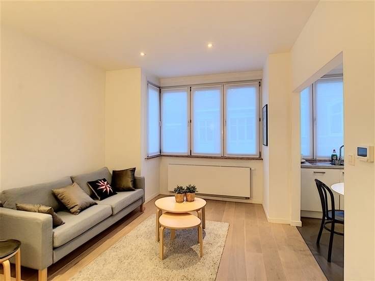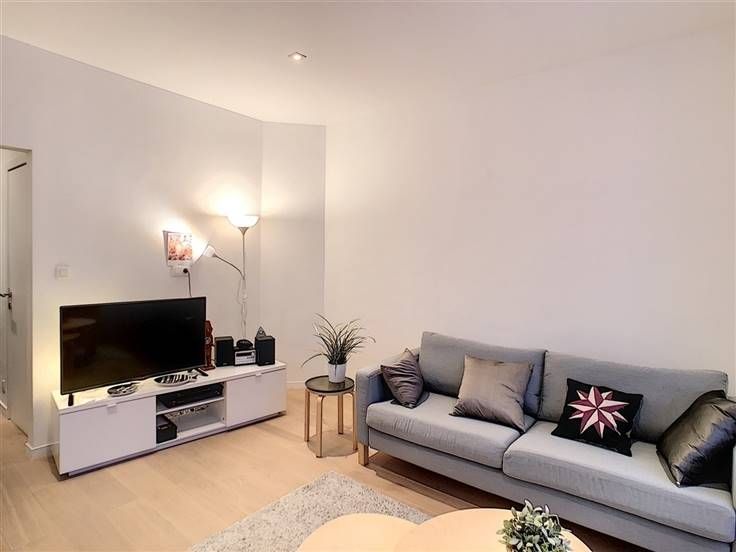 Parvis Saint-Pierre, bright and pleasant furnished 1 bedroom apartment of ±60 m² completely renovated in 2016 located on the 2nd floor of a small building close to the town hall of Uccle. It consists of an entrance hall, a beautiful living room of ±20 m², a balcony of ±2 m², a fully equipped American kitchen (oven, hob, extractor, fridge, freezer, dishwasher, NESPRESSO machine, dishes ) with a pleasant breakfast area, a large bedroom of ±16 m² with a dressing room, a bathroom (bath/shower, sink), separate toilet, fitted laundry room and cellar. Double glazing, oak parquet, blinds and curtains, armored door, individual gas boiler. Positive points: +++ location, many shops and public transport within walking distance, recently renovated apartment. Charges: 75€/month (common areas, cold water, insurance waiver of recourse, TV, internet). Available: 30/07/2021. Visits and info: 0470/11.33.18