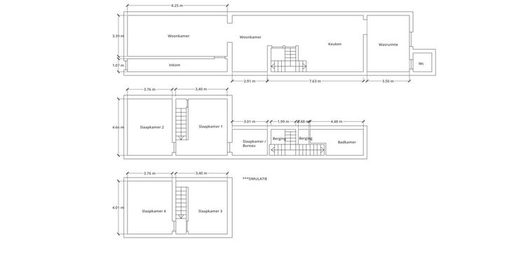 Op de eerste verdieping bevinden zich 3 ruime slaapkamers en een badkamer (douche, ligbad, toilet en lavabomeubel). Op de tweede verdieping bevinden zich nog 2 slaapkamers.