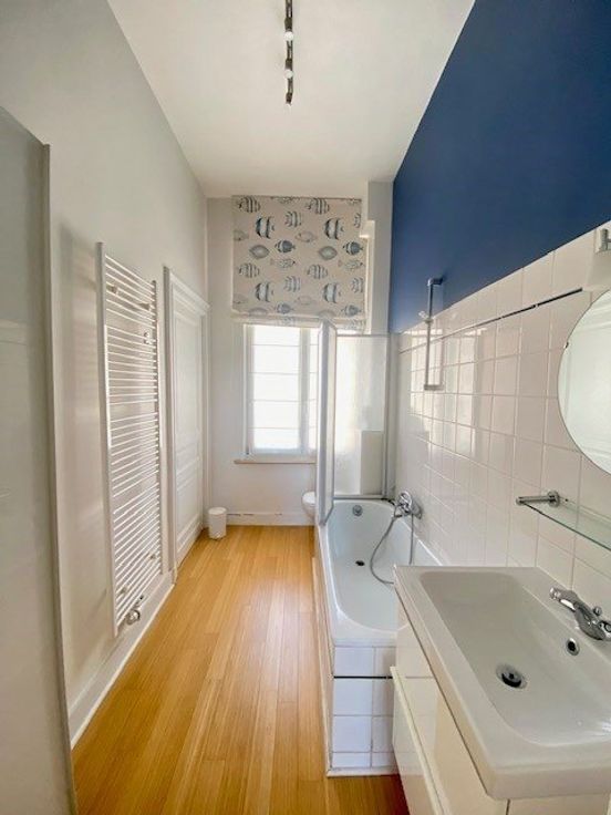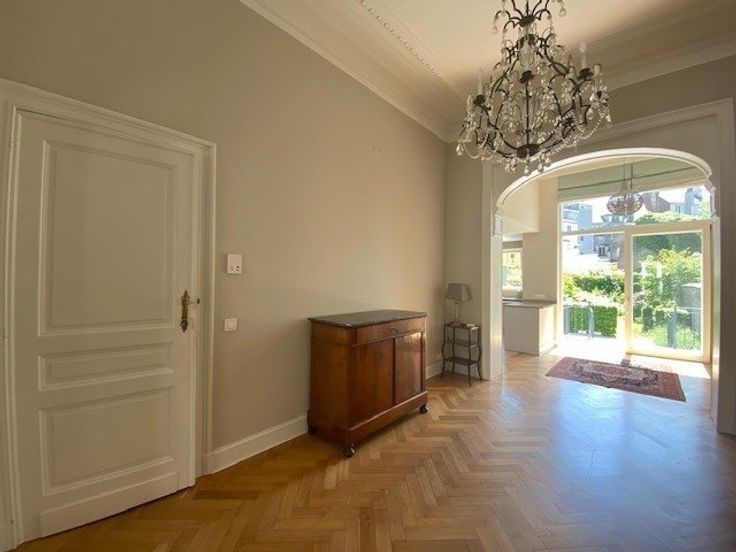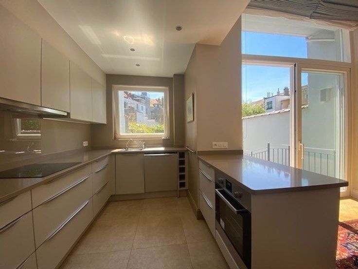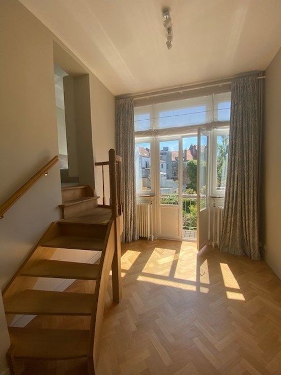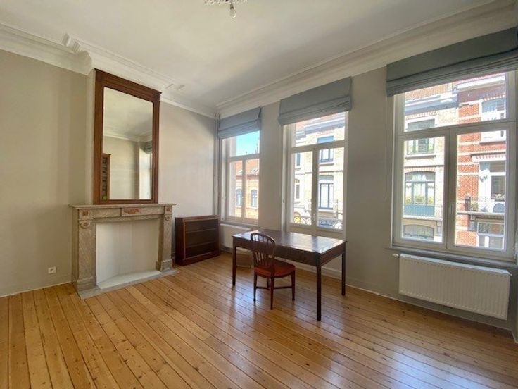 Sorry er is geen nederlandse vertaling beschikbaar. A proximité du métro Mérode, du parc du Cinquantenaire et de la rue des Tongres, dans une rue calme, très belle maison de ville rénovée en 2015 - elle se compose comme suit: au bel-étage: hall d'entrée, salon et salle à manger (trois pièces en enfilade, hauts plafonds, moulures et cheminées), cuisine américaine totalement équipée (frigo, congélateur, taque vitrocéramique, four électrique, hotte, lave-vaisselle), accès à la terrasse et au jardin de ville orientés sud-est; à l'entresol: vestiaire et wc visiteurs avec lave-mains; au premier étage: à l'arrière, double chambre principale de +/- 23m2 (parquet) donnant sur un balcon, salle de bain (bain, douche, double lavabo, wc, sèche serviett .