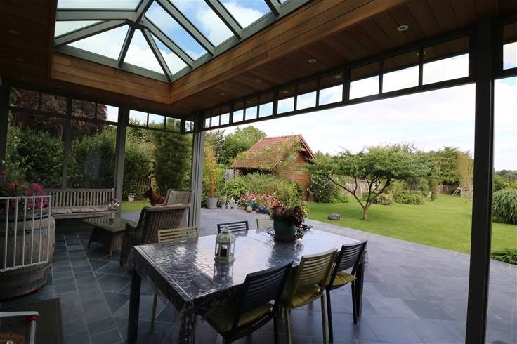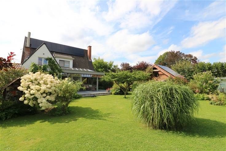 Dans un quartier résidentiel très calme (rue en impasse en bordure de champs) propriété atypique de 215 M² net habitable comprenant 5 chambres dont un studio avec accès indépendant et bâtie sur un superbe terrain arboré de 16 ares.