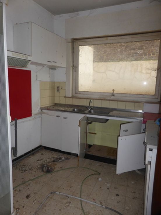 1ER ETAGE: STUDIO (+/- 32M2) COMPRENANT ESPACE CUISINE ET SANITAIRE, SEJOUR, WC SEPARE