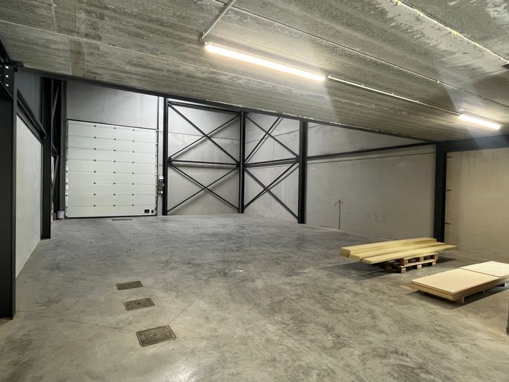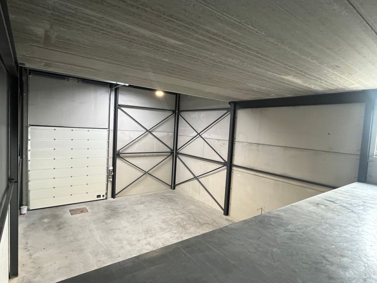 Deze is tevens uitgerust met een lichtstraat inclusief rookluik, een polybetonvloer en diverse elektrische aansluitingen. Verder heeft het ook 2 sectionale automatische poorten met een hoogte van 7 m.