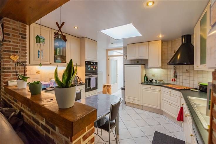 RUISBROEK - Binnenkomen doen we in de kleine inkomhal die uitgeeft in de eetkamer. De eetkamer gaat over in de woonkamer die naast de open keuken ligt. De keuken is volledig geïnstaleerd. Verder op de gelijkvloerse verdieping ligt de aangename badkamer met dubbele wastafel. De eerste verdieping bereiken we via de open trap. Binnenkomen doen we in de overloop die momenteel als dressing gebruikt wordt, deze ruimte kan ook optimaal als bureauruimte gebruikt worden. Hiernaast ligt de eerste ruime kamer. Via vaste trap gaan we naar de zolderverdieping, hier vinden we nog twee aangename kamers terug, elke kamer beschikt over handige opbergruimte. Achter de woning ligt een berging, terras en gezellige zuidgerichte tuin. De woning werd volledig gerenoveerd in 2000. De woning is onderkelderd, in de kelder staat ook een waterverzachter. EPC C. Vraag meteen uw bezoek aan via Brabant@macnash.com of 02/381 27 80. Stedenbouwkundige inlichtingen aangevraagd.