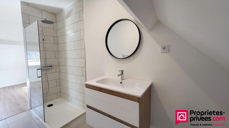 - 1 salle de d'eau avec meuble vasque, douche et WC.