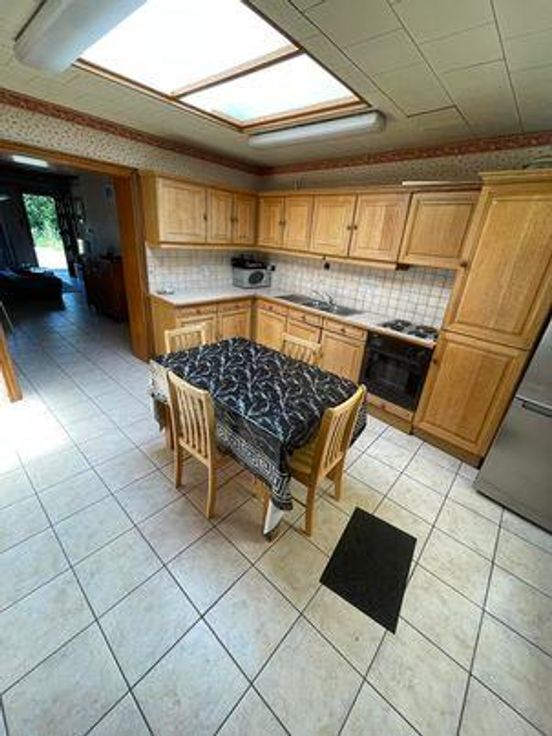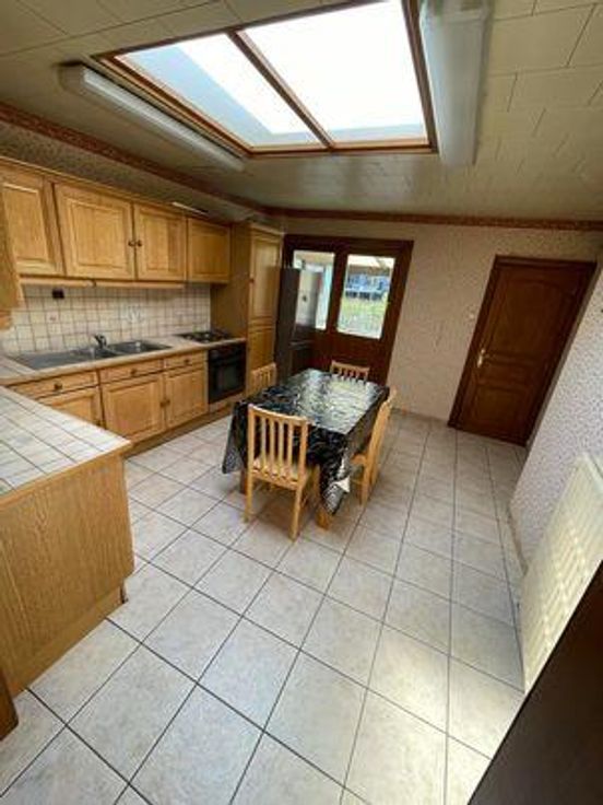 L'étude du Notaire Pol DECRUYENAERE, a le plaisir de vous proposer à la vente: Une maison d'habitation sise Ressaix, Avenue Victor Larock numéro 33, composée au rez-de-chaussée, d'un living/salle à manger, d'une cuisine équipée (2 éviers, 4 taques électriques, hotte, four, frigo), une salle de bain (douche évier WC), et également une terrasse et jardin. Le premier étage desserve 2 chambres (communicantes), ainsi que l'accès via escalier fixe au grenier, aménageable et non isolé. Le bien possède également un sous-sol avec des caves et une chaufferie. Informations complémentaires: -Pas raccordé aux égouts (fosse septique) -Toiture en tuiles, -Châssis simple vitrage, -Volets à l'arrière, -Citerne à eau de pluie, -Chauffage central mazout, (cuv r visiter, merci de cliquer sur l'onglet "Contacter le vendeur" par mail, afin de me permettre de vous envoyer votre permis de visite.