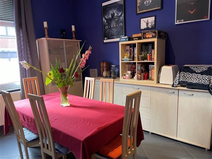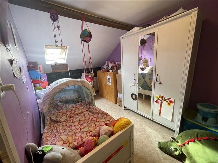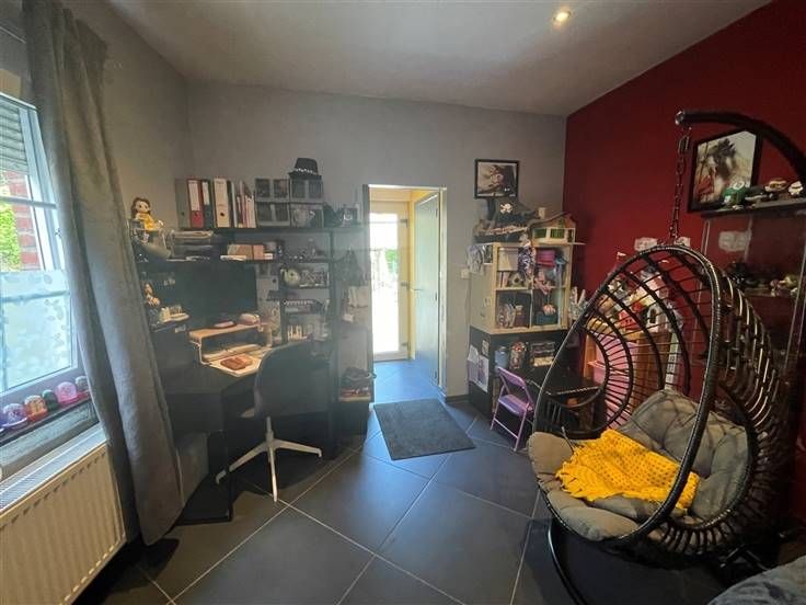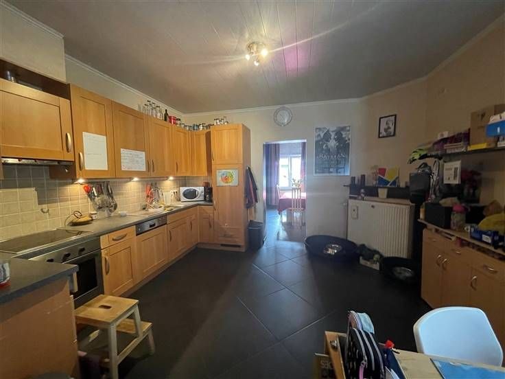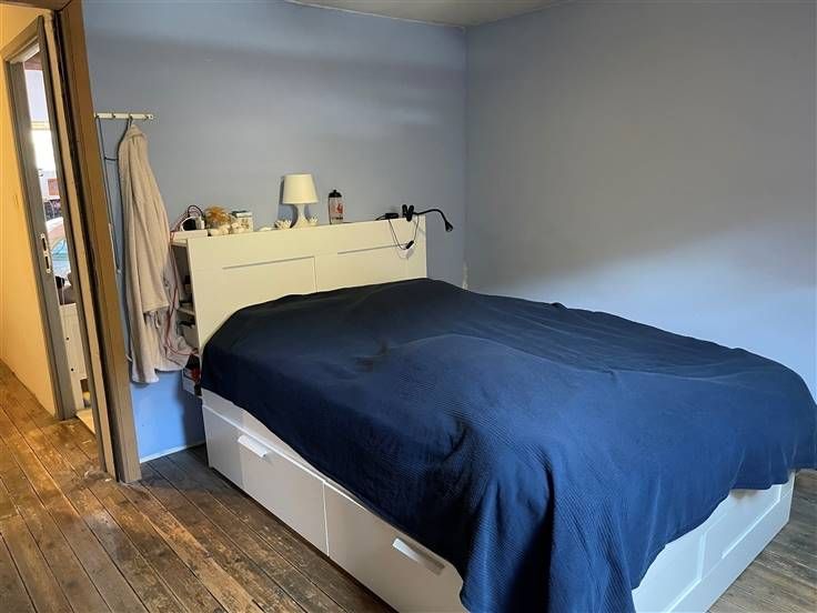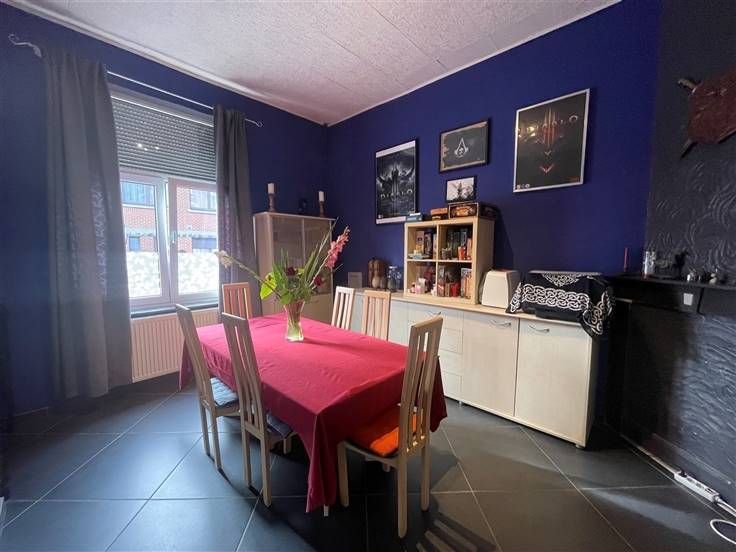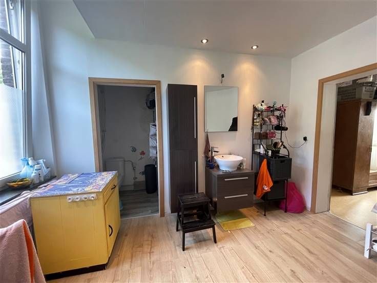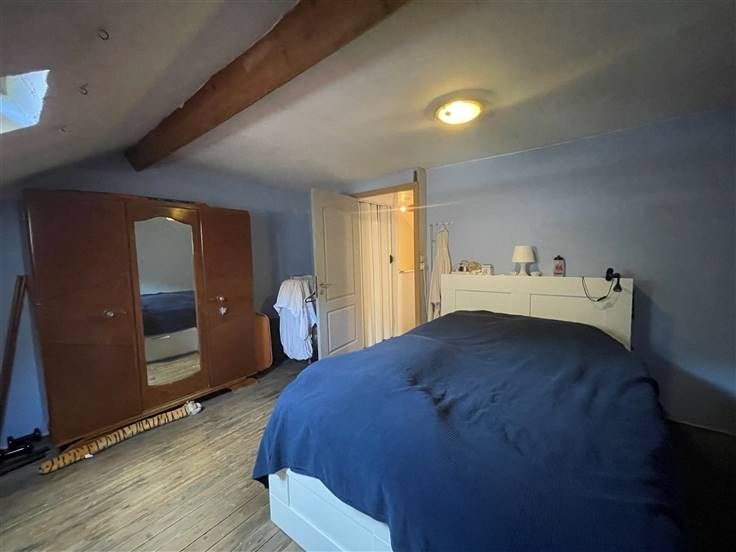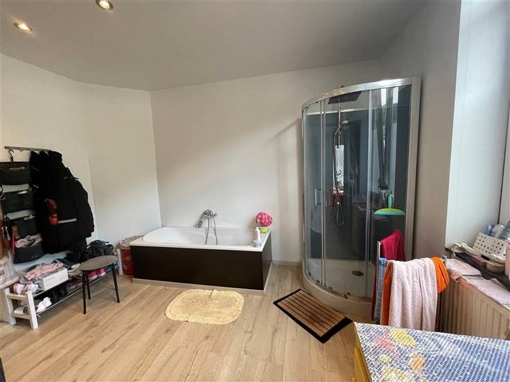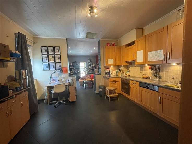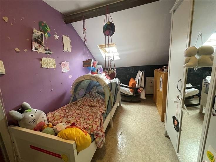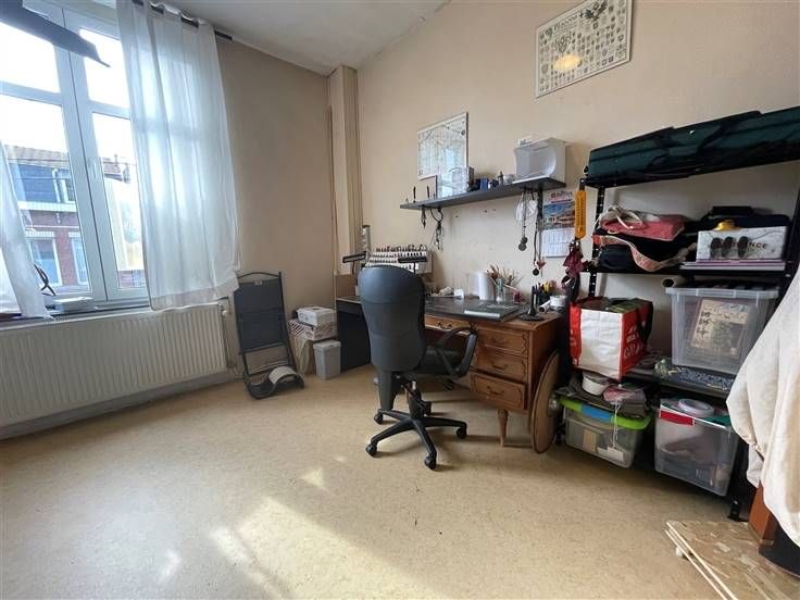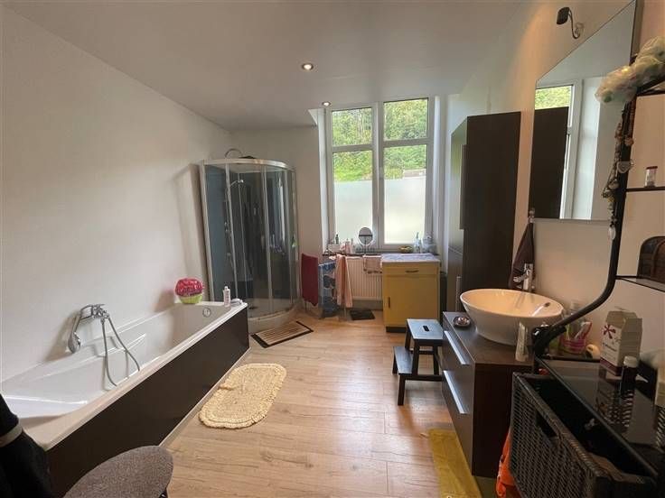 au 2 ième étage, hall de nuit, 2 ch. Caves, car-port, jardin, cour, entrée principale à l'arrière, passage latéral et cour commune. RC 255€ (poss frais réduits) PEB à E, DV, toit isolé.