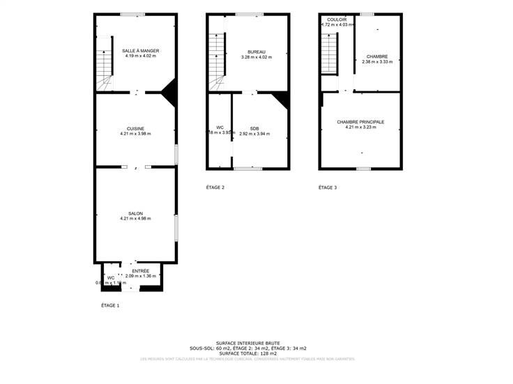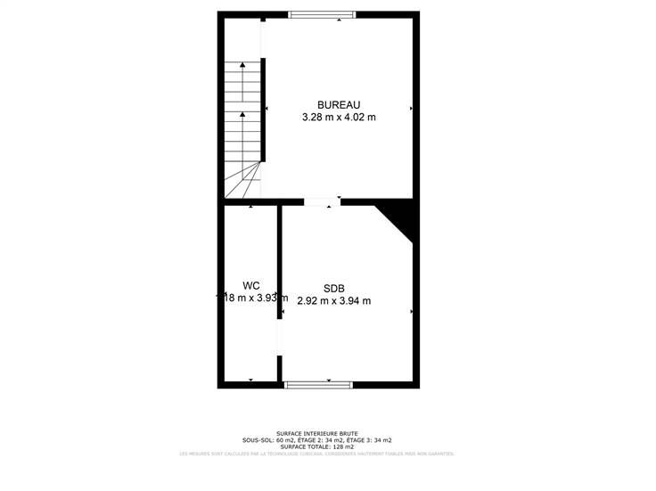 au 1ier étage : grand bureau (poss chambre), SDB (bain+douche), espace buanderie,