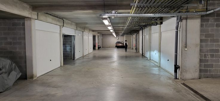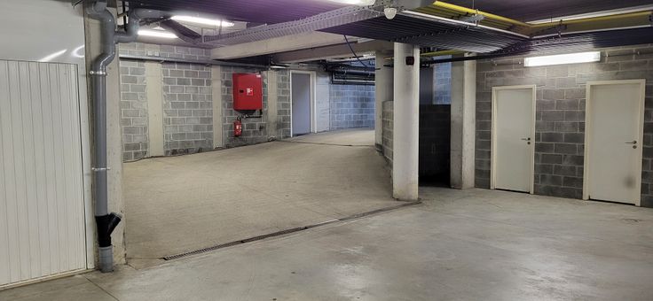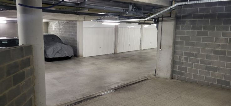 Garage fermé dans un sous sol d'immeuble récent à Bourgeois (Rixensart)