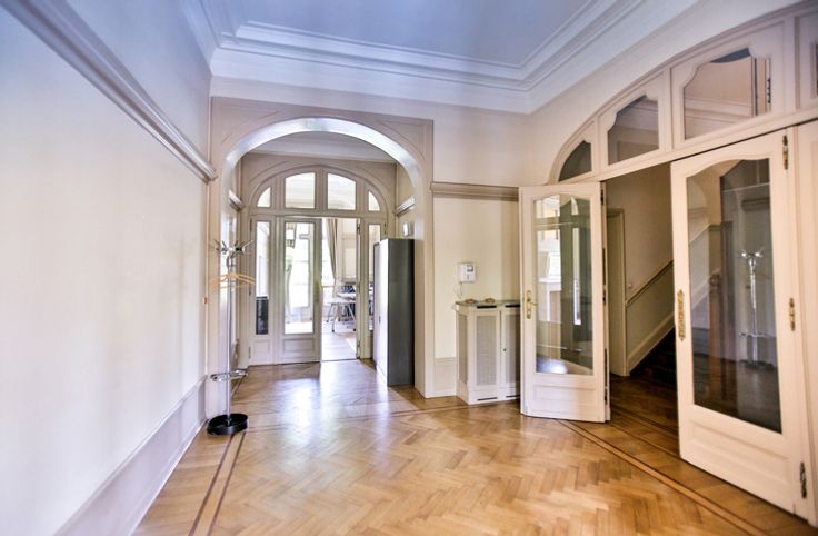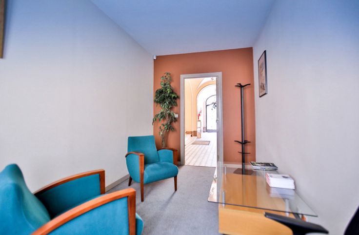 Lambermont, aantrekkelijke gemeubileerde kantoorruimte van ±130m² op de eerste verdieping, in een prachtig, volledig gerenoveerd herenhuis met lift en uitzicht op de tuin.