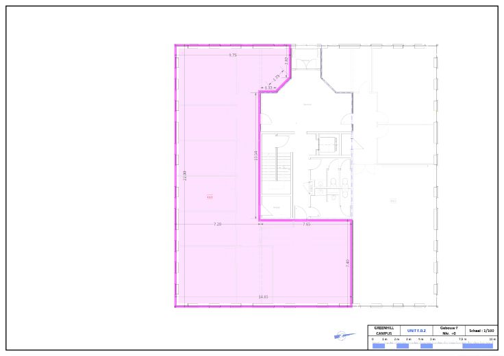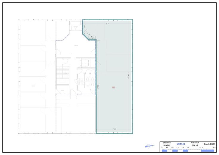 Het betreft het gehele gelijkvloers (F0.1 + F0.2) én een deel van de eerste verdieping (F1.2), is 790 m² groot, en wordt gehuurd door een huurder.