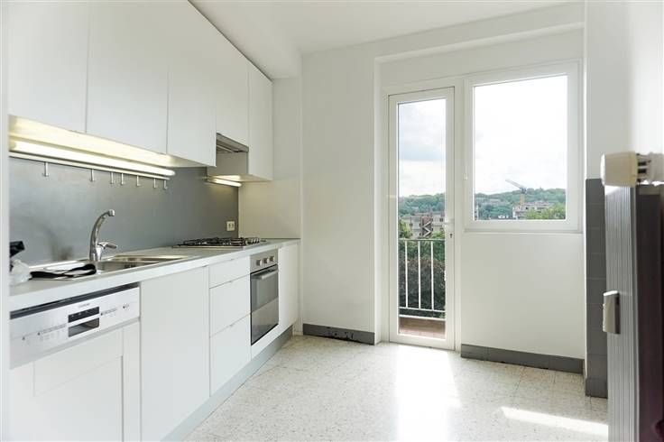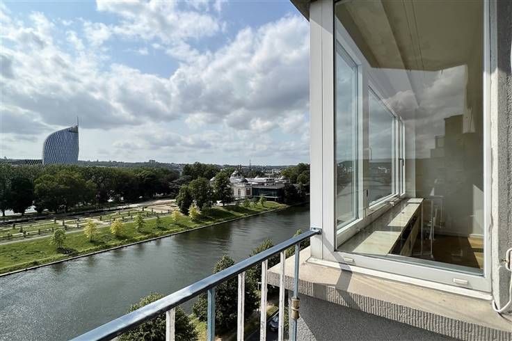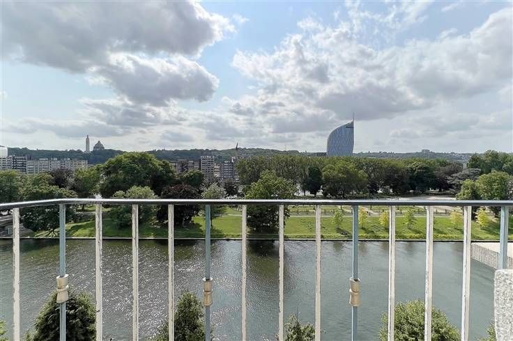 Mooie, lichte flat van 112 m² gelegen aan de Quai Mativa met prachtig uitzicht over het Parc de la Boverie. Bestaande uit een inkomhal, lichte woonkamer, ingerichte keuken met balkon, nachthal, 2 slaapkamers (waarvan één met terras), badkamer, kelder en garage. Centrale verwarming op gas, PVC ramen met dubbele beglazing. Dicht bij alle voorzieningen.