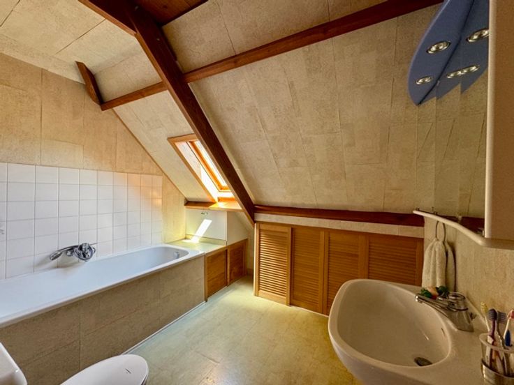 *** VENDU *** IVA Immobilière vous propose cette charmante villa de 1985 située dans un quartier résidentiel à quelques minutes du centre de Clabecq. Construite sur un terrain de 9ares 67ca, elle se compose au rez-de-chaussée d'un vaste hall d'entrée avec WC, d'un grand séjour lumineux de 50m² avec de grandes baies vitrées vers la terrasse et le jardin, d'une cuisine équipée (possibilité d'ouvrir vers le séjour), d'une buanderie/arrière cuisine, et d'un atelier ou pièce polyvalente de +/- 11m² accessible par l'extérieur. Au premier étage, un hall de nuit dessert trois chambres (15, 14 et 9m²) et une salle de bain. La maison dispose également d'un grenier de rangement, d'un carport, d'un abri de jardin (à restauré) et d'un espace de rangement. Les extérieurs ont été aménagés pour profiter pleinement des différentes parties du jardin avec ses plans d'eau et ses terrasses. Chauffage électrique, châssis en bois DV, électricité non-conforme, PEB "F". Ses atouts: saine et bien construite, vous serez séduit par le potentiel de cette maison, dans laquelle il fait bon vivre et qui pourra être réaménagée en fonction de vos besoins. *** FAIRE OFFRE À PARTIR DE 349.000€ ***. Pour une visite, contactez Inès.