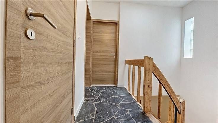 Rez: Hall d'entrée, petit bureau ou débarra, garage avec coin buanderie/chaufferie.