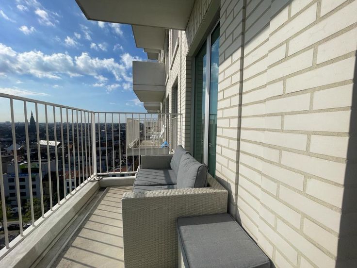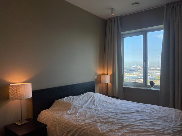 Dit mooi en ruim 2-slpk appartement is gelegen in de residentie Lichttoren op de 11de verdieping. U geniet van panoramische uitzichten over Antwerpen, Park Spoor Noord en de haven. Indeling: Inkomhal met apart toilet, leefruimte met open keuken (volledig geïnstalleerd alle elektrische toestellen) en toegang tot het terras. Kleine slaapkamer met enkel bed, master bedroom met dubbel bed. Bergruimte met combi wasmachine/droogkast, vestiarekast en badkamer met ligbad en dubbele lavabo. Prijs is incl. autostaanplaats in de ondergrondse parking. maandelijkse kosten 350 EUR/maand incl gas, water, elektriciteit en internet/tv.Het appartement is zeer gunstig gelegen met in de nabij van scholen, openbaar vervoer, winkels en ziekenhuis. Makkelijk bereikbaar en meteen aan belangrijke uitvalswegen Antwerpen-Brussel, Antwerpen- Haven, Antwerpen-NL.