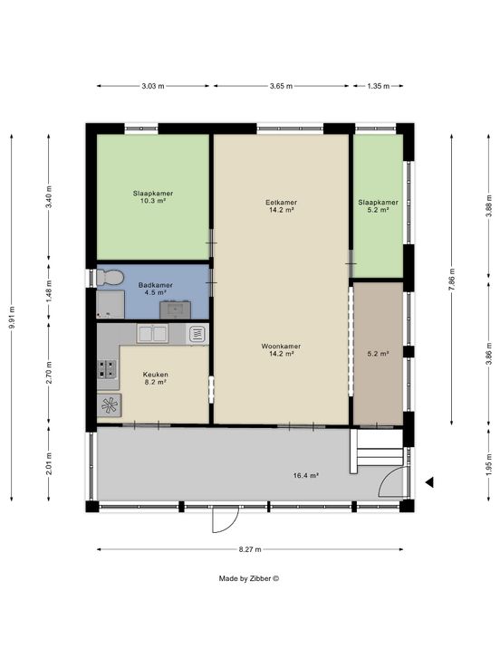 De woning heeft een bewoonbare oppervlakte van 138m² (kelder + verdieping, volgens EPC) en beschikt over een gezellige eetkamer en zithoek, keuken, 2 slaapkamers, badkamer (voorzien van douche, toilet en lavabo) en achteraan een gezellige veranda met aansluitend terras en tuin.De oriëntatie achteraan is zuidwest, ideaal voor het plaatsen van zonnepanelen.
