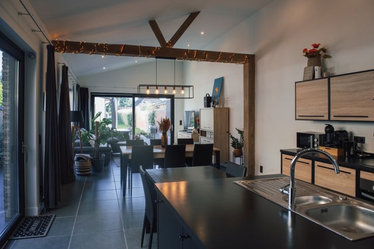 De indeling is als volgt: BENEDEN: inkomhal met gastentoilet en badkamer met inloopdouche; lichtrijke open leefruimte met vloerverwarming; praktisch gelegen berging naast de keuken met wasmachine en droogkast. De hoge plafonds en ramen zorgen voor veel licht en een bijzonder gevoel van ruimte. BOVEN: 2 slaapkamers en toilet ZOLDERVERDIEPING: mogelijkheid tot extra kamers BUITEN: poort naast de woning, twee terrassen (aansluitend aan de woning en verder in de tuin). De ruime zonnige tuin en het grote bijgebouw (40m²) bieden veel mogelijkheden.