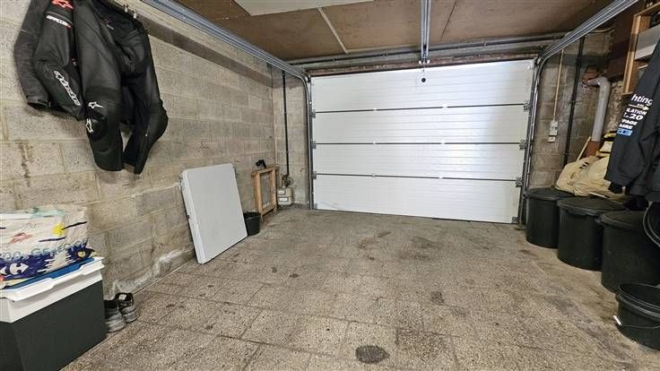 Rez: Pièce d'entrée (bureau), living, cuisine semi-équipée, WC séparé, salle de douche, terrasse (dalle béton), jardin, garage.