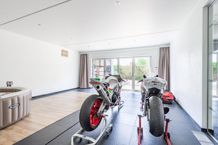 Op het gelijkvloers is er ook een commerciële ruimte. Weet dat hier al een overdekt zwembad met jetstream ligt, die nog een verdere afwerking vraagt.