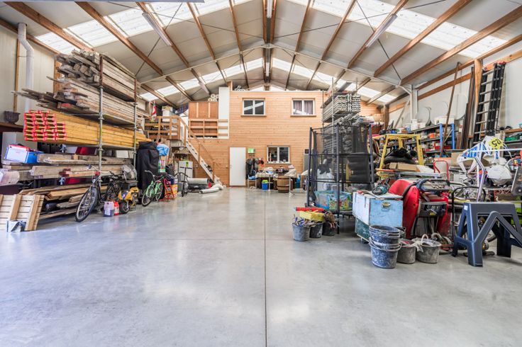 In 2014 stond de loods van 240m² er. Hierin heeft de verkoper toen een tijdelijk huis gemaakt, zie de foto's vanaf de 2de keuken, met 4 kamers voor in te wonen, ter afwachting van het huis die ernaast ging gebouwd worden. De loods vanbinnen is meer dan 4 m hoog en heeft een professionele afwerking.
