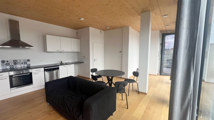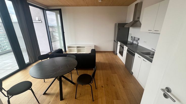 Le long de la Meuse, a deux pas du Quartier Latin, nous vous proposons un appartement 2 chambres de 80m². Situé au 8ème étage, vous profiterez de la vue imprenable sur la Meuse. Il se compose d'un spacieux séjour, avec salle à manger, cuisine USA hyper équipée, salle de douche, wc indépendant et buanderie. Visite sur RDV : info@twentyseven.be / +32 493 83 45 31