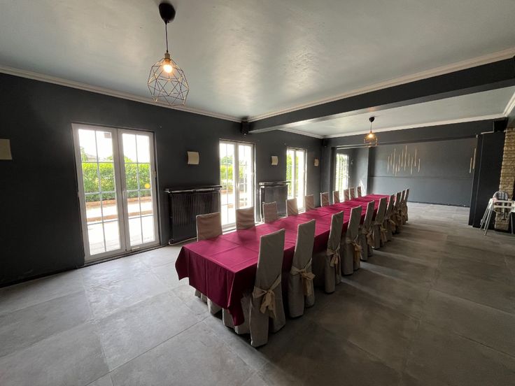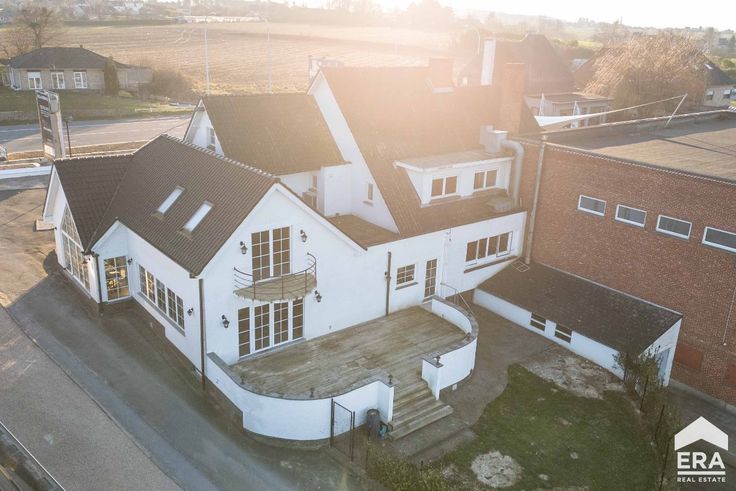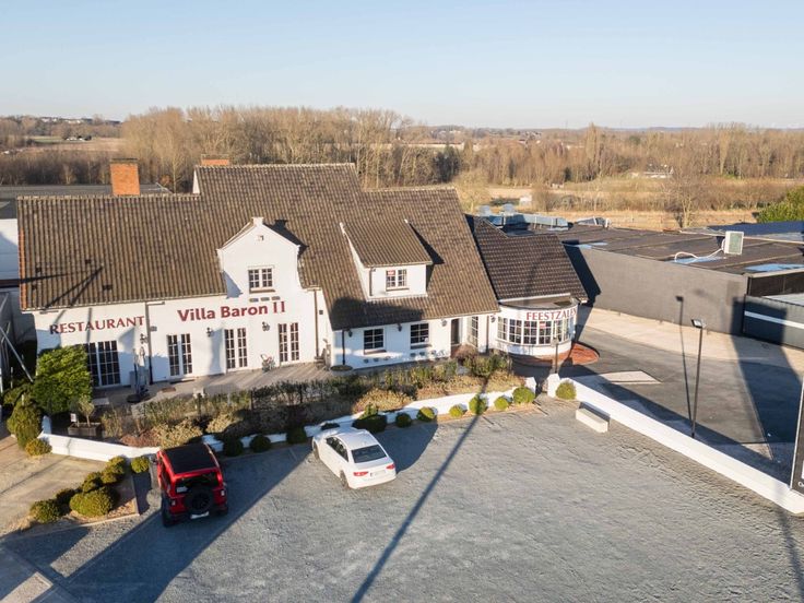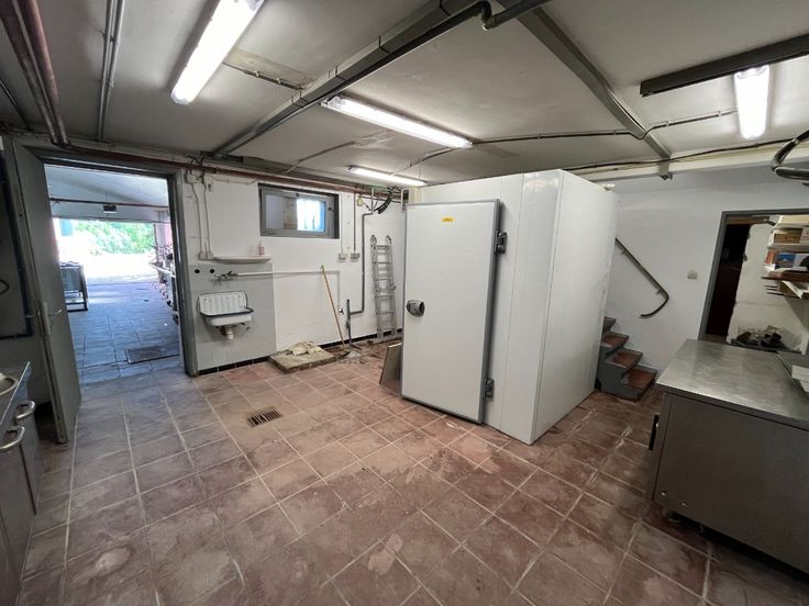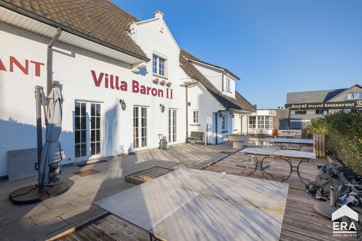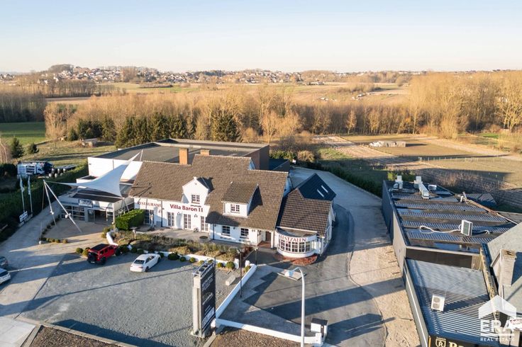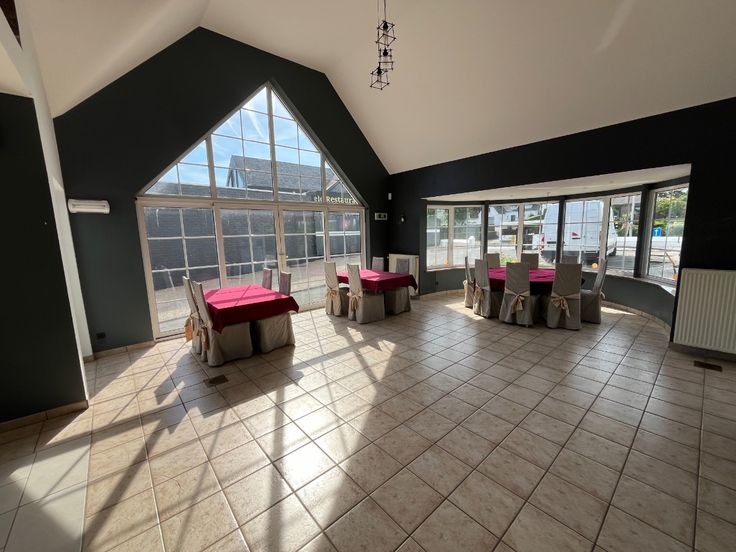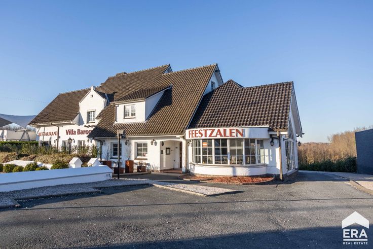 Het pand bestaat uit een zaal geschikt voor 150 tot 180 personen met een industriële keuken en aangenaam terras en balkon, grote bergkelders met koelcel en een appartement op de eerste verdieping met 5 slaapkamers.Enkele troeven:
