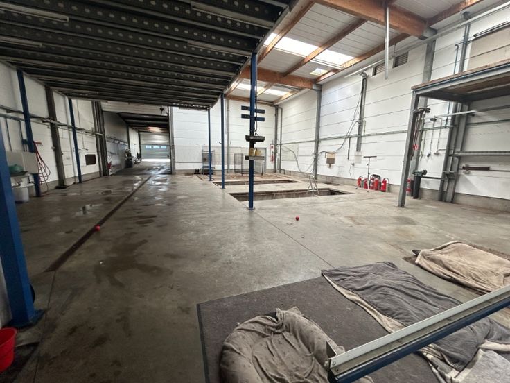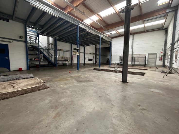 Het pand beschikt over opslagruimtes van +/- 800 m² en een bureauruimte 74m².