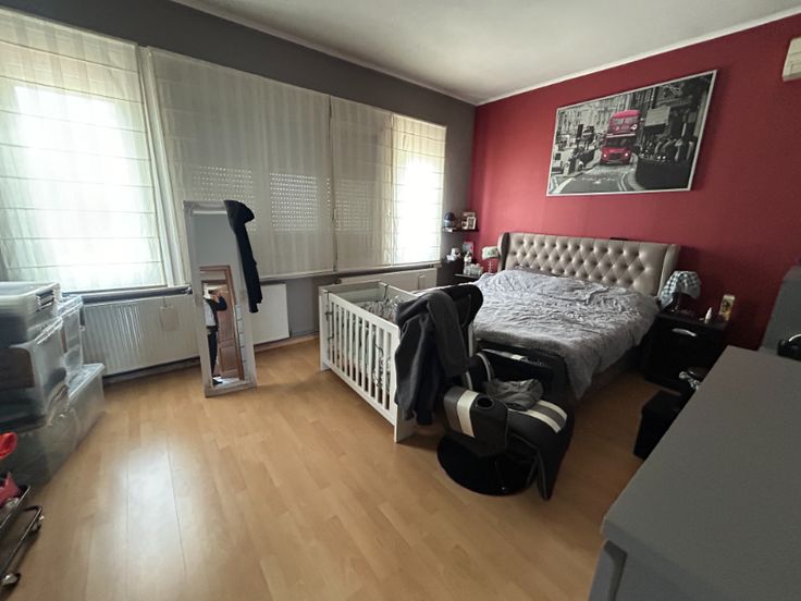 Op de 1ste verdieping bevindt zich het appartement van +/- 120² dat bestaat uit 2 slaapkamers, ruime woonkamer, badkamer keuken en terras.