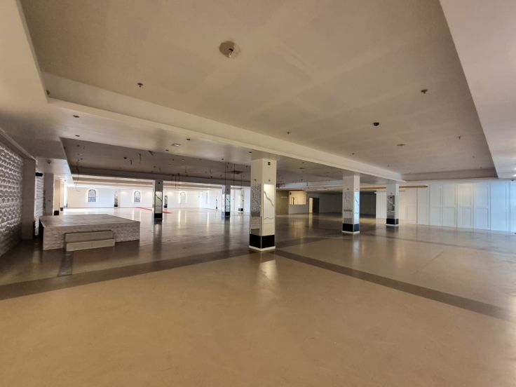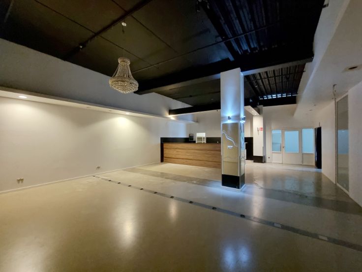 Ruime zaal die mogelijks opgedeeld kan worden om meerdere kleine ruimtes te maken.