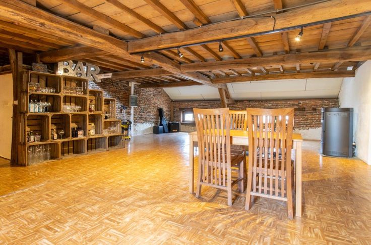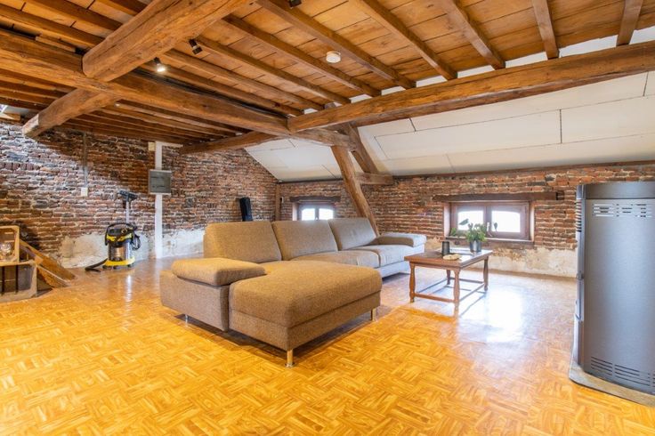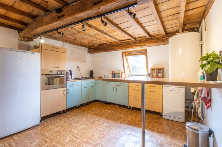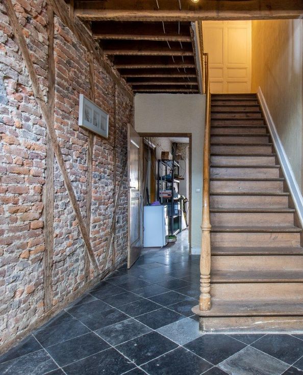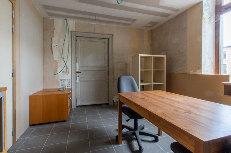 Dit woonhuis geniet van een garage, een goed gelegen terras (op het zuiden) en een tuin eveneens toegankelijk via een zijstraat. Gelijkvloers : inkomhal, grote ruimte van 42 m² verdeeld in twee delen door een niet-dragende muur, berging met toegang tot de achterzijde van het pand. - Eerste verdieping : 2 mooie kamers, kantoor, badkamer. - Tweede verdieping : een ruime leefruimte (60 m²) met keuken, wasruimte. - Derde verdieping : in te richten zolder. - Ondergronds : kelder.