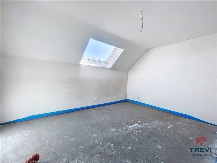 In een mooie, rustige straat niet ver van de hoofdwegen, aantrekkelijk nieuw energiezuinig huis met 3 slaapkamers en aantrekkelijke, goed georiënteerde tuin. Oplevering van het huis voltooid voor de dag van de akte! Het huis is voorzien van hoogwaardige afwerking, versterkte thermische en akoestische isolatie, vloerverwarming via een warmtepomp en een compleet fotovoltaïsch systeem voor optimale energieprestaties (PEB A-label). Het huis bestaat uit een betegelde inkomhal met apart toilet die leidt naar de mooie woonkamer van 40 m² en de volledig uitgeruste open keuken, die door de koper kan worden gekozen. Mooi terras en afgesloten tuin. Boven, via een mooie nachthal, 3 slaapkamers, waaronder een mooie master bedroom van 23 m² met dressing, eigen badkamer en 2 andere mooie slaapkamers van 13 m², elk met toegang tot de tuin. Aantrekkelijke doucheruimte van 4 m² met inloopdouche en wastafel. Aparte WC. Zolder voor opslag. Aluminium ramen met dubbele beglazing. Prijs: €409.500 exclusief kosten (btw op de bouw en registratierechten op de grond). Informatie en bezoeken op 02/355.50.55.