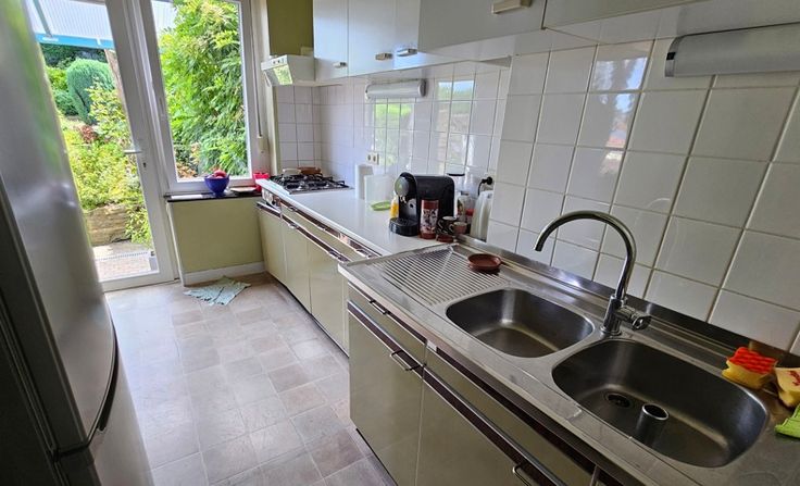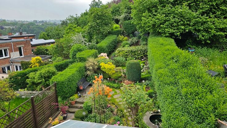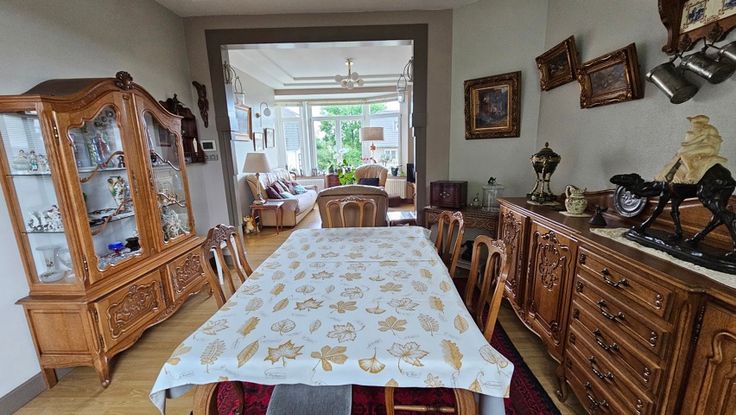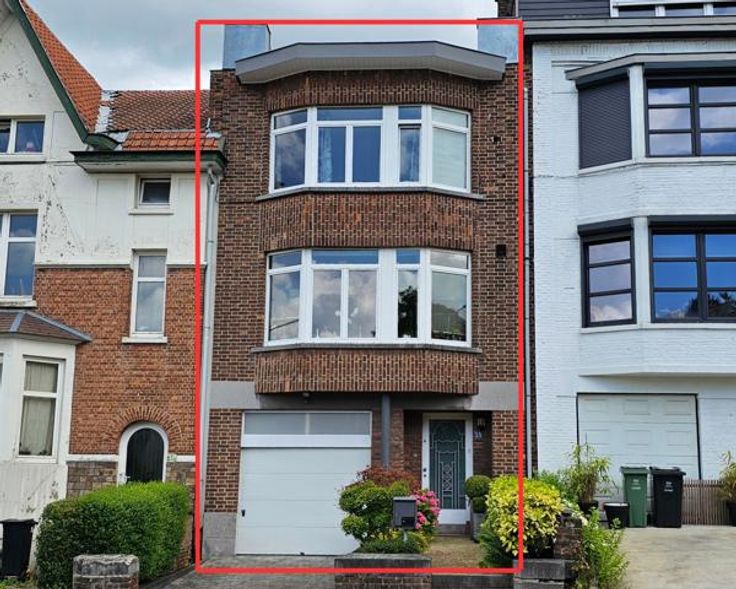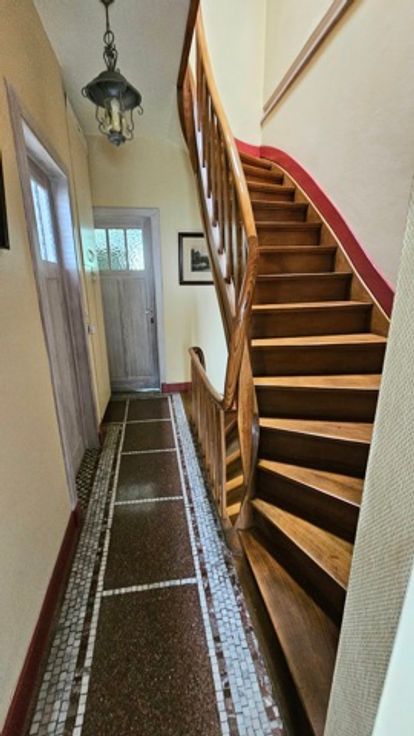 - au 1er étage : un living spacieux et lumineux donnant sur la salle à manger, une cuisine, accès à la terrasse et au jardin