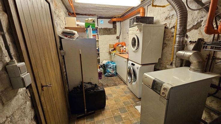 - au rez-de-chaussée : un garage, 2 caves, le hall d'entrée