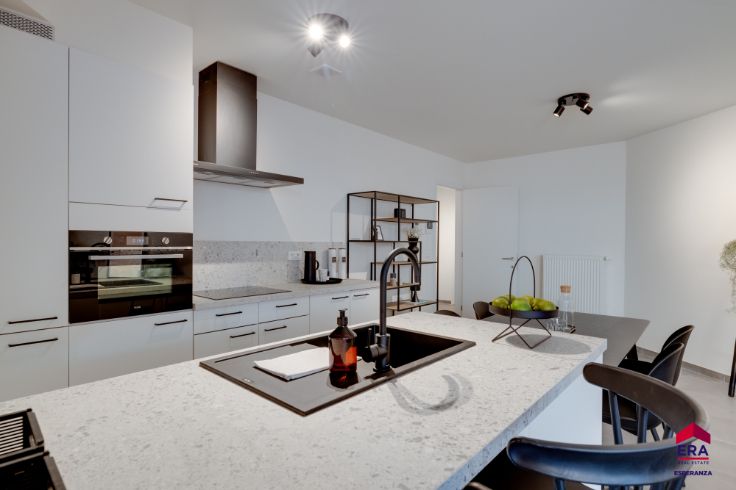 Dit appartement (app 4) ligt in de Duivenstraat (zijstraat Markt) en bevindt zich op het gelijkvloers. De indeling is als volgt: • Inkom • Aparte hangtoilet en handwasbakje • Leefruimte met toegang tot het gezellige terras • Ingerichte keuken met kookplaat, oven, koelkast, spoeltafel en dampkap • Berging met aansluiting voor wasmachine en droogkast grenzend aan de keuken • Nachthal met toegang tot de 2 slaapkamers en ingerichte badkamer met oa douche en lavabomeubel • Vloertegels in de inkom, gang, wc, badkamer, berging, living en keuken • Faïencetegel in de badkamer volledig tot op plafondhoogte • Laminaat in de slaapkamer • Terras. Voor eigen bewoning is 6% BTW van toepassing. Specifiek voor investeerders bieden we volgende diensten aan:ontdek onze gratis verhuurdiensten en 2 jaar huurgarantie. Onmiddellijk bewoonbaar bij akte. Dit appartement is reeds geschilderd en voorzien van armaturen. Meer info via evi@dcvlaarne.be of 0475504008. Een afspraak ter plaatse behoort steeds tot de mogelijkheden.