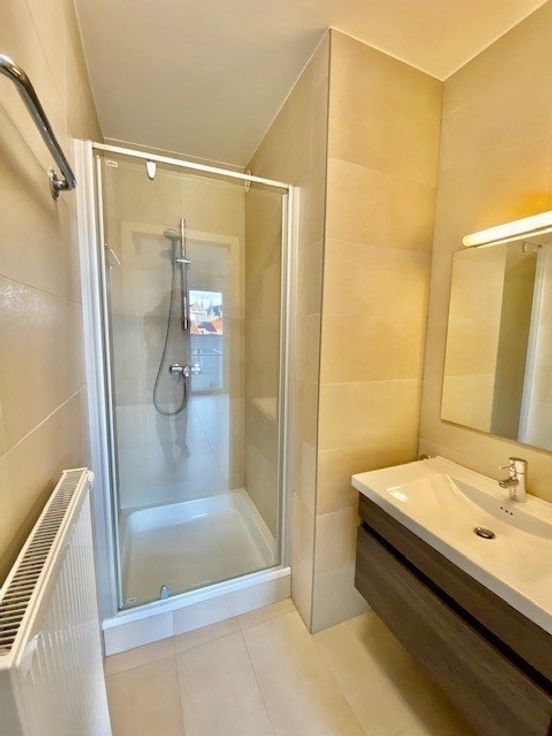 Sorry er is geen nederlandse vertaling beschikbaar. Montgomery/ prox. Union Européenne et parc Cinquantenaire, bel appartement de 2008 sis au 4°étage/8 – +/- 95m2 - il se compose de: hall, wc, lave-mains, vestiaire, lumineux living en façade avec bow window( +/- 39m2, dalles), cuisine totalement équipée ouverte (électroménagers Siemens), 2 chambres (13,30m2 et 11,80m2 ), salle de bain, salle de douche, belle terrasse arrière (accès par les deux chambres), buanderie, cave attenante au box fermé 1 voiture au niveau -2 (+150€) – chauffage individuel au gaz, thermostat programmable, vannes thermostatiques, ascenseur, double vitrage, porte blindée, alarme, vidéophone – PEB : D- - provision charges communes : 75€/mois - les superficies sont donn