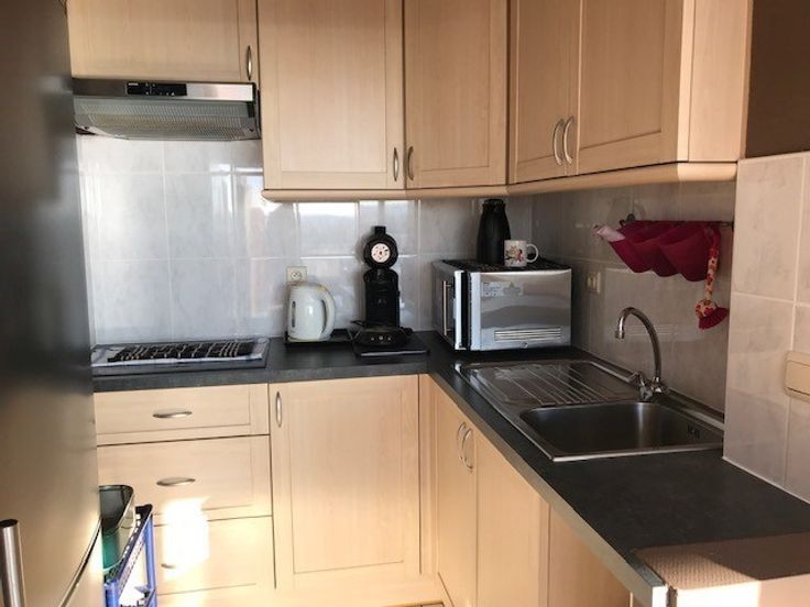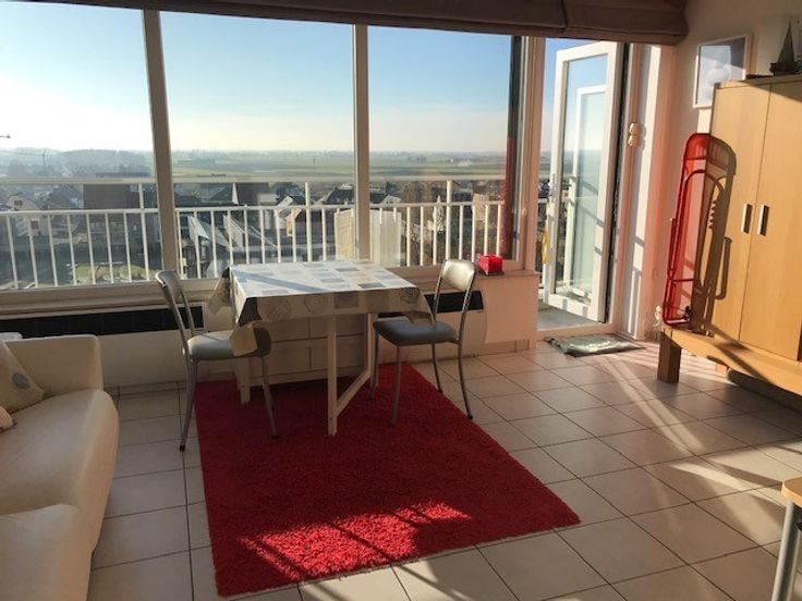 Zeer goed ingerichte studio met zongericht terras, slaaphoek met bedkast, badkamer met douche, toilet en lavabo, halfopen volledig ingerichte en vernieuwde keuken, living met panoramisch zicht langs de zonnekant van het gebouw. Private kelder en fietsenberging in het gebouw.