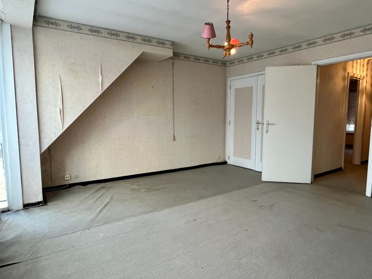 Te renoveren woning te koop in centrum Izegem! Bij het betreden van de woning kom je in een gang, waar aan de linkerkant een ruime garage te vinden is. In deze garage passen twee auto's achter elkaar, en er is ook een buitendeur die naar de koer leidt. Op de eerste verdieping bevinden zich de keuken, die aansluit op een terras, de ruime leefruimte, en de badkamer met een bad, toilet, en douche. Op de tweede verdieping zijn er drie slaapkamers, evenals een ruimte die kan dienen als bergruimte, bureauruimte, of dressing.