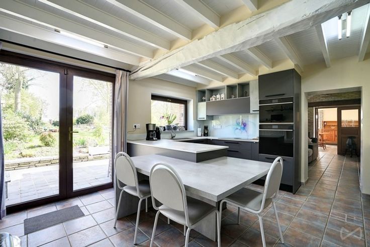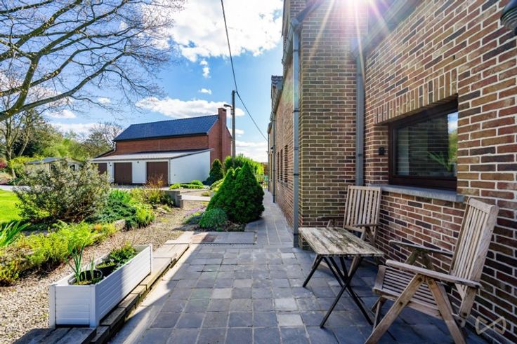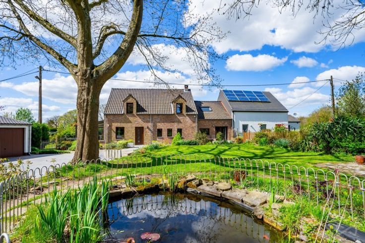 Suspension des visites. We Invest vous propose cette magnifique maison, située à Marche-lez-Ecaussinnes, proche des axes autoroutiers. Elle est constituée au rez-de-chaussée d’un hall d’entrée, d'un WC, d'un lumineux séjour de +-36m², d'un salon, d'une cuisine équipée moderne et de qualité, d'une salle de bains, d'un hall, d'une chaufferie, d'une salle de douche et d'une chambre (possibilité d'y vivre de plain-pied). La partie extérieure est composée d'un spacieux jardin, d'un potager, d'une véranda, d'une pergola, d'une terrasse ,d'un abri de jardin, d'un étang et de 3 garages. Au premier étage, une mezzanine +- 28m² dessert 2 chambres de +- 20m² et +-30m² avec chacune un dressing supplémentaire de +-10m². Très bonnes prestations : électricité conforme, 22 panneaux photovoltaïques (dont 12 sur un tracker), citerne d'eau de pluie, adoucisseur, chauffage central + pompes à chaleur+ feu aux bois, système de sécurité, triple vitrage. Cave. Matériaux de qualité (dekton, chaîne massif...). Coup de coeur garanti ! Infos et visites valentin.s@weinvest.be ou 0499/14.21.98. F.O à partir de de 439.000 €, sous réserve d'acceptation du propriétaire.