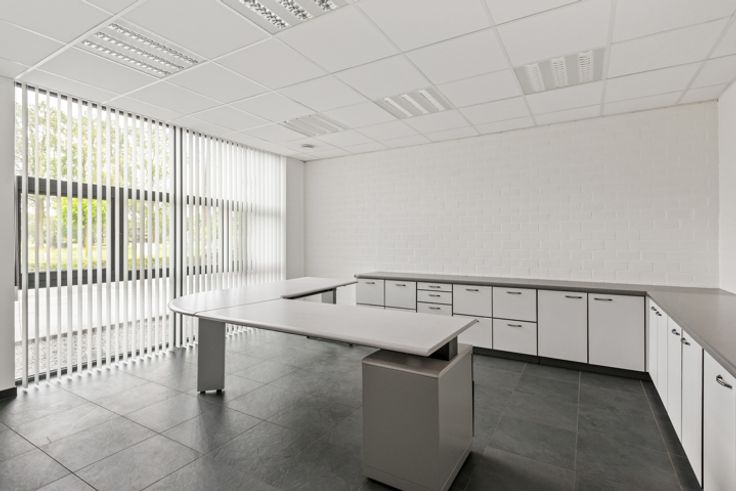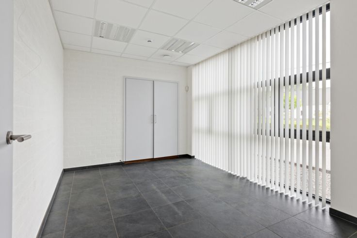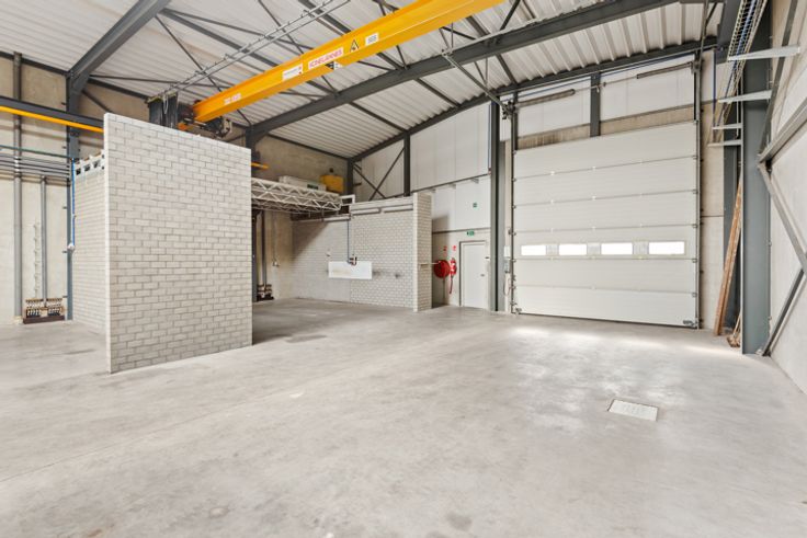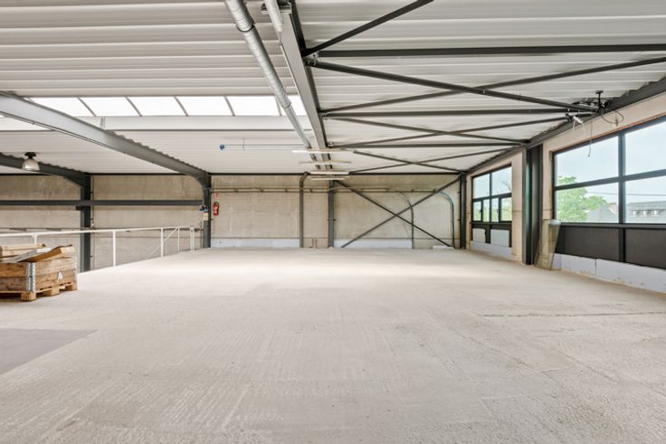 Deze KMO-unit is gelegen in de bedrijvenzone Stenehei in Dessel met een vlotte verbinding naar Mol, Geel en via Retie naar de E34 autosnelweg Antwerpen-Eindhoven. Ze heeft een bruikbare oppervlakte op het gelijkvloers van 750 m² en op de eerste verdieping van 150 m². Burelen: aan de straatzijde is de inkomhal met ontvangstruimte, links en rechts een bureelruimte, een brand- en inbraak beveiligd archief, een sanitaire blok met twee toiletten. Aan de werkplaats palend bevinden zich een grote bureelruimte, een refter met de nodige aansluitingen voor een keuken en een omkleedkamer met aansluitend een ruimte waar alles is voorzien om een douche te plaatsen. De burelen zijn voorzien van een ventilatiesysteem. Werkplaats: De werkplaats is 40 m op 15 m, vrije hoogte 6 meter. De vloer bestaat uit gepolierde beton. Er is een apart toilet voor werknemers voorzien. Via een vaste trap bereiken we de eerste verdieping van 150 m² die volledig open is en kan ingericht worden als extra opslagruimte of als extra burelen. Via een grote elektrische sectionaalpoort (4 m hoogte) aan de achterzijde van de hal kan al het nodige materiaal naar binnen of buiten gereden worden. Verwarming: De volledige unit (werkplaats + burelen) wordt verwarmd met vloerverwarming, aangedreven door een warmtepomp met diepteboring (geothermie). Het voordeel is dat u met dit systeem ook kan koelen. Hierdoor kunnen u en/of uw personeel steeds werken in aangename omstandigheden, winter en zomer. Technische uitrusting