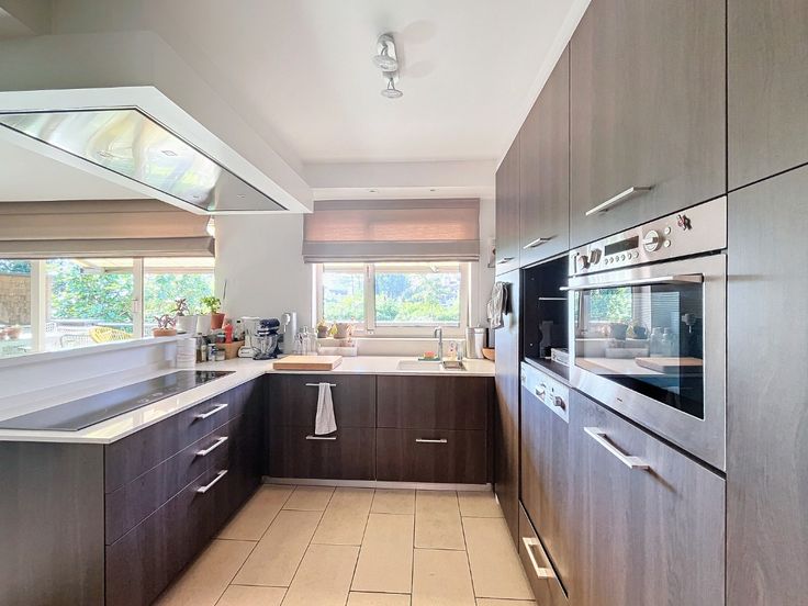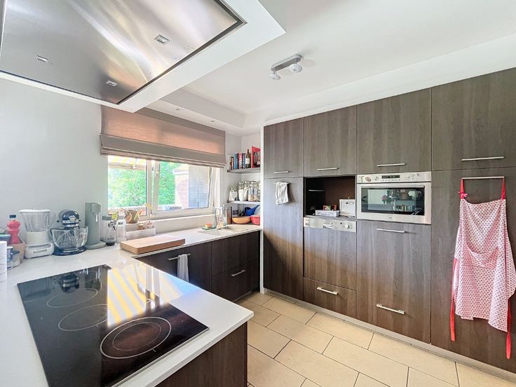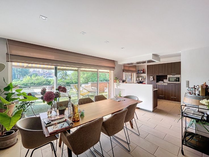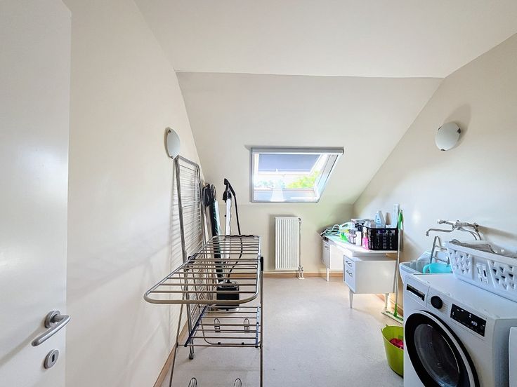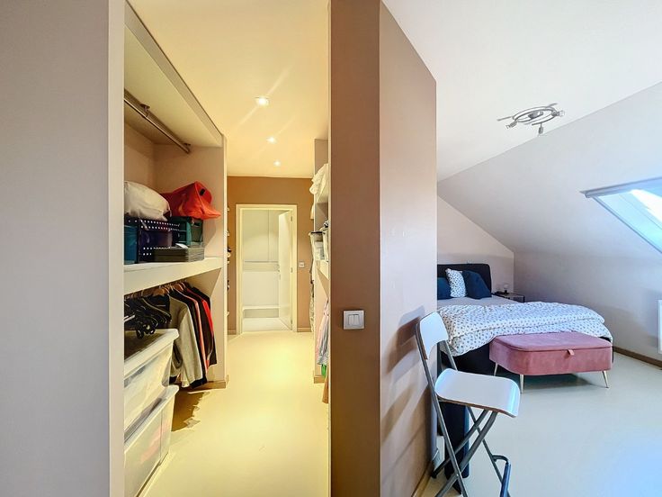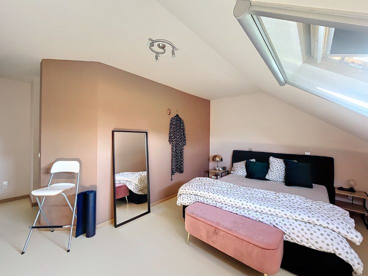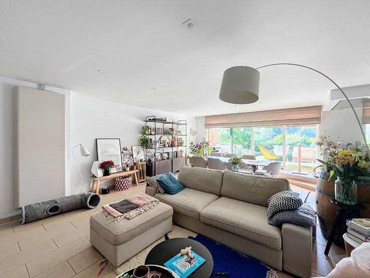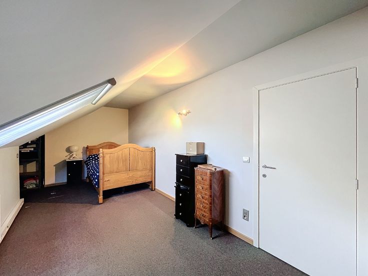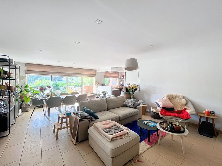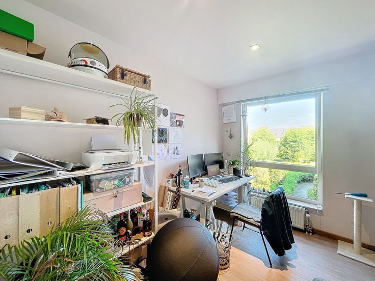 Omschrijving: Eerste Verdieping: Inkomhal: Met apart toilet en lavabo., Woonkamer: Ruim (7,10 x 5 m) met een recent volledig ingerichte open keuken., Berging: Aansluitend aan de keuken (8 m²)., Terras: Zonnig, met uitzicht op groen (7,70 x 2,12 m)., Slaapkamer/ bureau 1: 2,16 x 3 m + 3,25 x 3,39 m, voorzien van vinyl vloerbedekking., Badkamer 1: 2,86 x 3,19 m, met dubbele wastafel, massage-stoomdouche en massagebad. Tweede Verdieping: Nachthal: Geeft toegang tot alle kamers., Wasruimte/Strijkkamer: 3,87 x 2,49 m, met vinyl vloerbedekking., Grote Slaapkamer: 5,73 x 3,39 m, met dressing en aansluitende, recentebadkamer voorzien van wastafel, douche, toilet en infraroodsauna., Slaapkamer 3: 6,33 x 2,66 m, met tapijtvloer. Extra’s: Kelder, Twee ondergrondse staanplaatsen bij het appartement te huren aan 150 euro per maand.. Algemene lasten: €200 per maand voor privé water, huisvuil, onderhoud van het gebouw, gemeenschappelijke tuin, lift, elektriciteit en water van de gemeenschappelijke delen, syndicus. Beschikbaar 1 november.