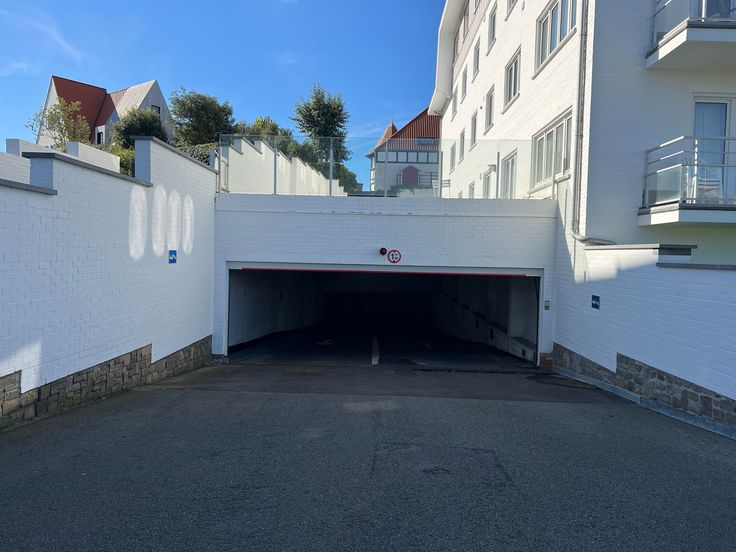Gemakkelijk bereikbare garage op verdieping -1 in residentie Windsor in Duinbergen vlakbij het strand. Afmetingen: H: 1,9 B: 2,7 L: 5,7 Renovatieplicht: onbekend