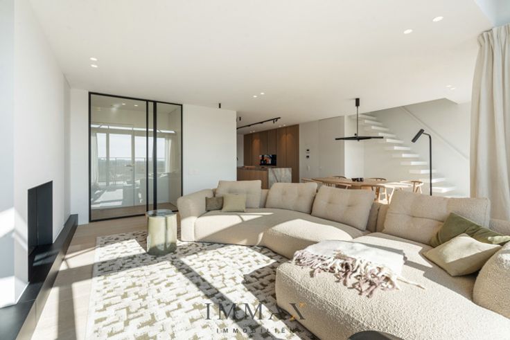 Geniet van panoramische vergezichten in deze royale, lichtrijke penthouse van ca. 155 m² in nieuwbouwresidentie 'Crown', vlak bij de zee, en de winkelstraten van Knokke. Op de benedenverdieping bevindt zich een uitnodigende inkomhall, compleet met vestiaire en apart gastentoilet. Zeer brede living met open haard en royale raampartijen. Grenzend hieraan lonkt een volledig ingerichte, open keuken met een eethoek. Het woongedeelte loopt naadloos over in een subliem zuidgerichte zonneterrassen. Op de bovenverdieping bevinden zich drie ruime slaapkamers en twee stijlvolle ingerichte doucheruimtes met toilet en dubbele lavabo.  Dit dakappartement werd zeer luxueus afgewerkt en perfect samengesteld door een gerenommeerde binnenhuisarchitect. Kortom, een oase van rust!  In de kelder kan er een staanplaats gekocht worden en is er genoeg plaats voor fietsen. Een externe ruime garagebox is ook nog mogelijk. Interesse in dit stijlvol verblijf ?  Aarzel niet om ons te contacteren via meer informatie/bezoek in te plannen via tel. :  050 62 44 14 of via knokke@immax.be