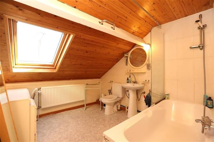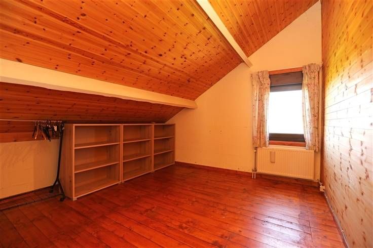 Onder het dak 2 slaapkamers elk 13,50 m², badkamer 8 m² met ligbad, wastafel en wc, berging 4m² en mezzanine 6,50 m².