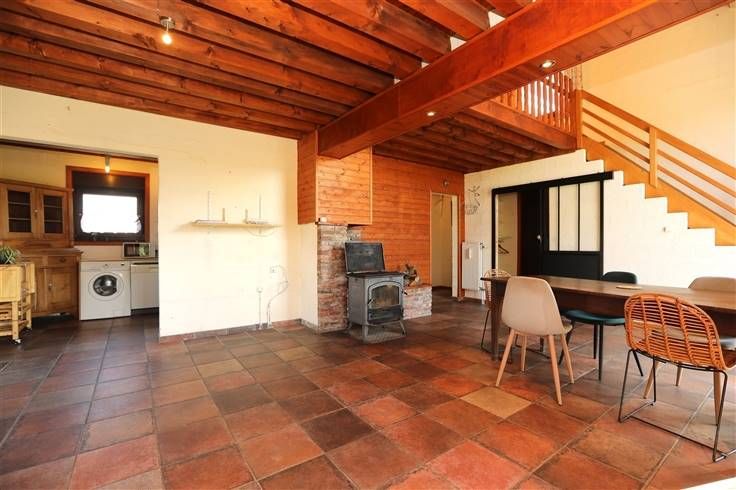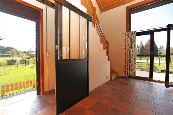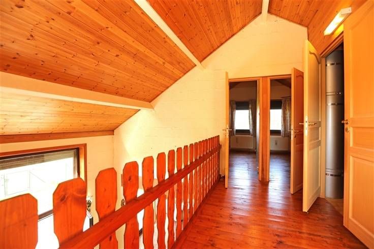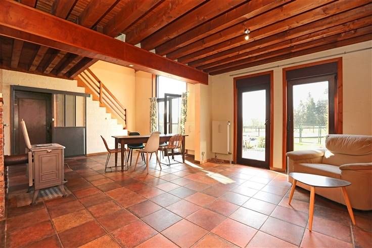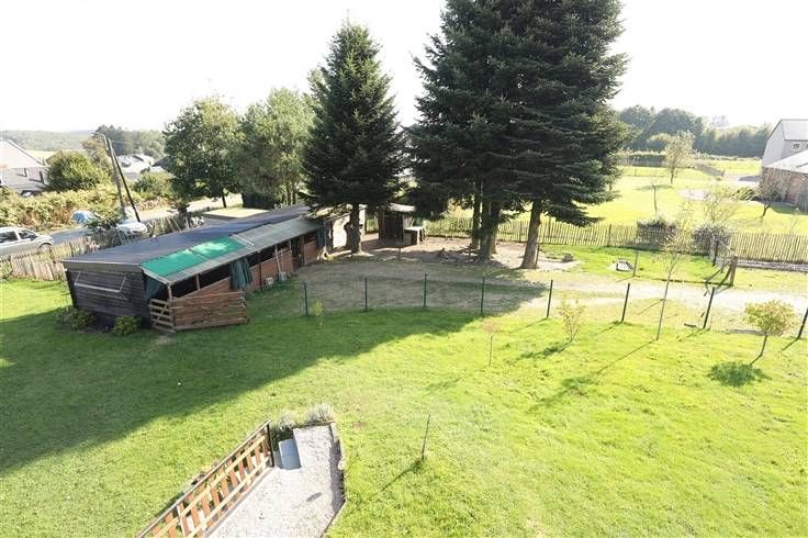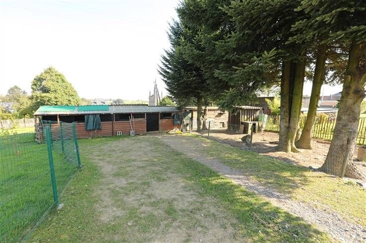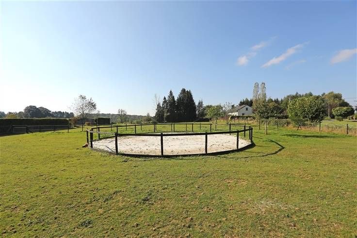 Ideale pand voor paarden eigenaars omdat dit geniet van een longeerronde met zandvloer, gebouw met houten skelet en metalen dak met 3 boxen 8-9 en 11 m² op betonvloer, voor de boxen overdekte ruimte 18 m², hooi/stro reserve, kleine garage en kippenhok. Aparte duiventil en moestuin met serre maken het geheel af.