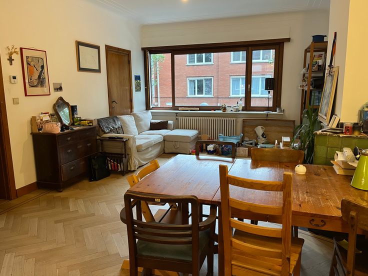 Totale bewoonbare oppervlakte van ruim 100 vierkante meter. Ruime woonkamer met nog uniek schouwmantel. Eetkamer met terras. De eetkamer zou desgewenst dienst kunnen doen als extra slaapkamer. Volledig ingerichte keuken met veel berging, vaatwasser, gasfornuis met dampkap, koelkast, aparte vriezer, dubbele lavabo en aansluitend een aangenaam tweede terras met zicht op een park. Twee slaapkamers, waarvan 1 ideaal dienst kan doen als dressing/wasruimte. Badkamer met ligbad en douchescherm. Apart toilet. Overal dubbele beglazing en kiepstand-functie. Mooie parketvloeren en authentieke deuren. Het appartement beschikt over zeer bijzondere elementen die het een zeer aparte en unieke stijl geven. Voor wie van deze stijl houdt is dit absoluut een pareltje.