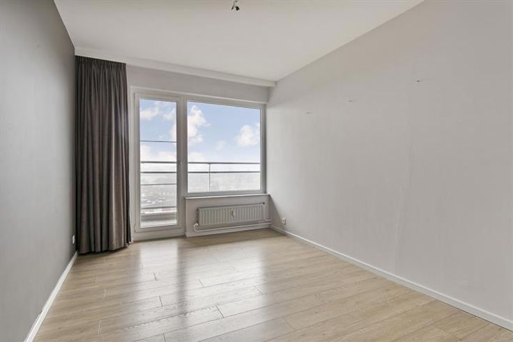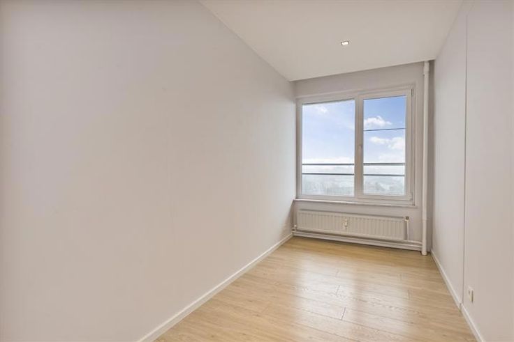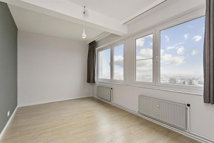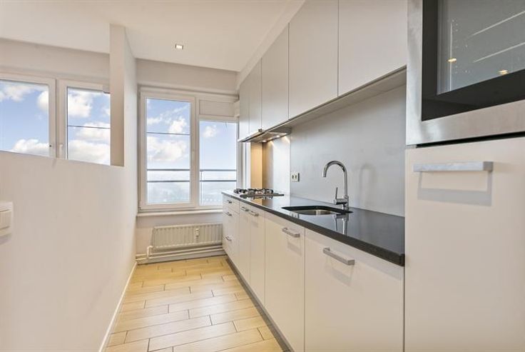Dit recent gerenoveerd appartement van ca. 98m² bevindt zich op de achtste verdieping van een goed onderhouden gebouw. Het appartement heeft twee ruime slaapkamers en één extra ruimte die kan dienen als gastenkamer/bureau/dressing of kinderkamer. Indeling: Via de inkomhal met vestiairekast komt u in de ruime leefruimte van ca. 40m² met veel lichtinval en een volledig geïnstalleerde keuken. De keuken op keramische tegels werd volledig ingericht met een granieten keukenblad, een ruime gootsteen, 4-pits gasvuur met dampkap en een ingebouwde vaatwasser, oven en ijskast. Naast de keuken bevindt er zich een technische berging. De leefruimte geeft verder toegang tot het oost georiënteerd terras. De centraal gelegen nachthal sluit aan op alle overige ruimtes van het appartement (slaapkamers, badkamer en gastentoilet). De vernieuwde badkamer is voorzien van een inloopdouche met regenkopdouche en een wastafel met spiegelelement. De slaapkamers genieten allemaal van mooi zicht en bieden voldoende ruimte aan. Bijzonderheden: Ondergrondse kelderberging en fietsenstalling in het gebouw; EPC: 157 kWh/m²/jaar; Maandelijkse kosten: 150 EUR per maand (Beheer, verbruik/onderhoud algemene delen (incl. liften) + Verbruik koud/warm water & verwarming); Voldoende parkeergelegenheid rondom het gebouw. Ligging: Op wandelafstand van winkels en vlak aan openbaar vervoer en invalswegen.